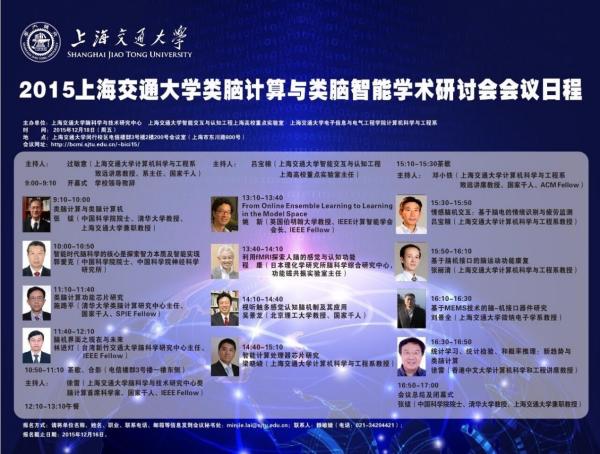 2015年12月18日,由好色tv 脑科学与技术研究中心、好色tv 智能交互与认知工程上海高校重点实验室和好色tv 计算机科学与工程系联合主办的2015好色tv 类脑计算与类脑智能学术研讨会在好色tv 闵行校区成功召开。