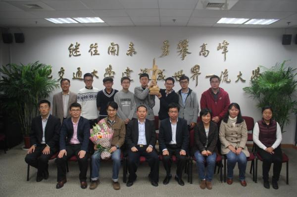 参赛代表队的指导老师臧斌宇和夏虞斌向获奖同学表示祝贺并进行总结,指出正是“知其不可为而为之”的交大精神支持参赛团队取得了优异的成绩。参赛学生代表也对老师的关怀表示感谢,几位学生代表分别讲述了自己的比赛心得体会。参赛学生代表利文浩、华志超为两位指导老师献花。