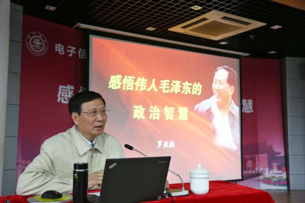 11月18日下午,“感悟伟人毛泽东的政治智慧”——电院第十五期党员论坛在电院3-200报告厅成功举行,本期论坛嘉宾罗亚拉将军为电院学子带来了题为“感悟伟人毛泽东的政治智慧”专题报告。电院院长毛军发、党委书记苏跃增、党委副书记杨一帆、原党委副书记莫光成,以及电院教师代表出席本期论坛。