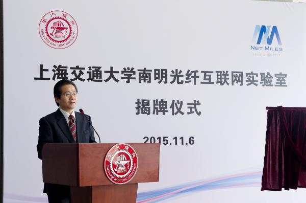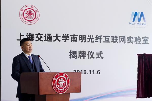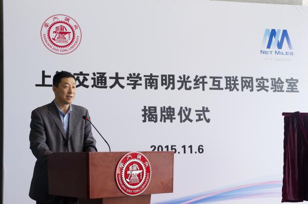 苏跃增代表学校对联合实验室的建成表示祝贺。他表示,上海交大与南明光纤及其母公司中国光纤建立了成功的校企合作典范。资本投入、科研合作、技术共享等都给双方带来了新的发展机遇。联合实验室的成立,将进一步推动和深化上海交大与行业内各高科技企业的合作,促进光互连领域的长足发展。