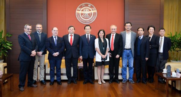 2015年11月2日上午,西班牙萨拉戈萨大学校长Manuel Lopez率团访问交大电院,该校科研副校长Luis M. Garcia、国际关系副校长Regina Lazaro、材料科学研究所所长Javier Campo、纳米科学研究所所长Ricardo Ibarra、纳米科学研究所教授Jesus Martinez等随同来访。