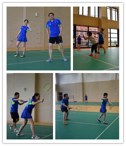下午1:30羽毛球比赛正式拉开序幕。双方队员在四片场地展开车轮大战,砰砰的击球声,阵阵的喝彩声,还有胜利的击掌声在球馆中此起彼伏。