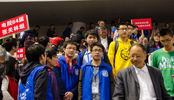 校友返校联谊的过程当中,有一批人始终陪伴在这些校友左右,带领他们参观交大美丽的校园,解答他们提出的关于现今电院的种种疑问。这些人就是电院的学生志愿者,从早上的校庆大会到下午的各届校友联谊都能看到他们忙碌的身影,其中一些人更是一大早就前往徐汇校区迎接返校校友,一路上为返校的电院校友们提供无微不至的帮助,使他们尽快熟悉新的学校和学院,真正拥有了回家的感觉。