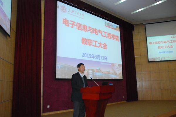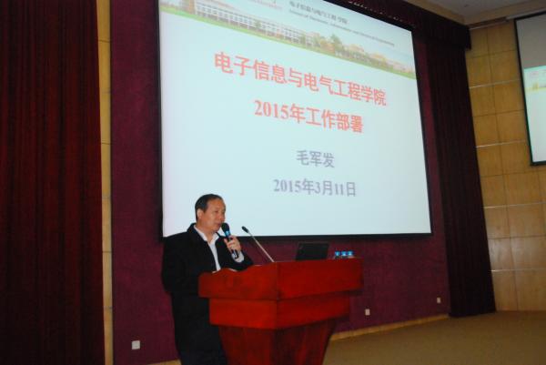 2015年3月11日下午,好色tv 在微电子大楼一楼多功能报告厅召开全院教职工大会。院长毛军发部署学院2015年工作,院党委书记苏跃增传达了学校2015春季学期干部大会会议精神,并对学校2015年工作要点进行了解读。