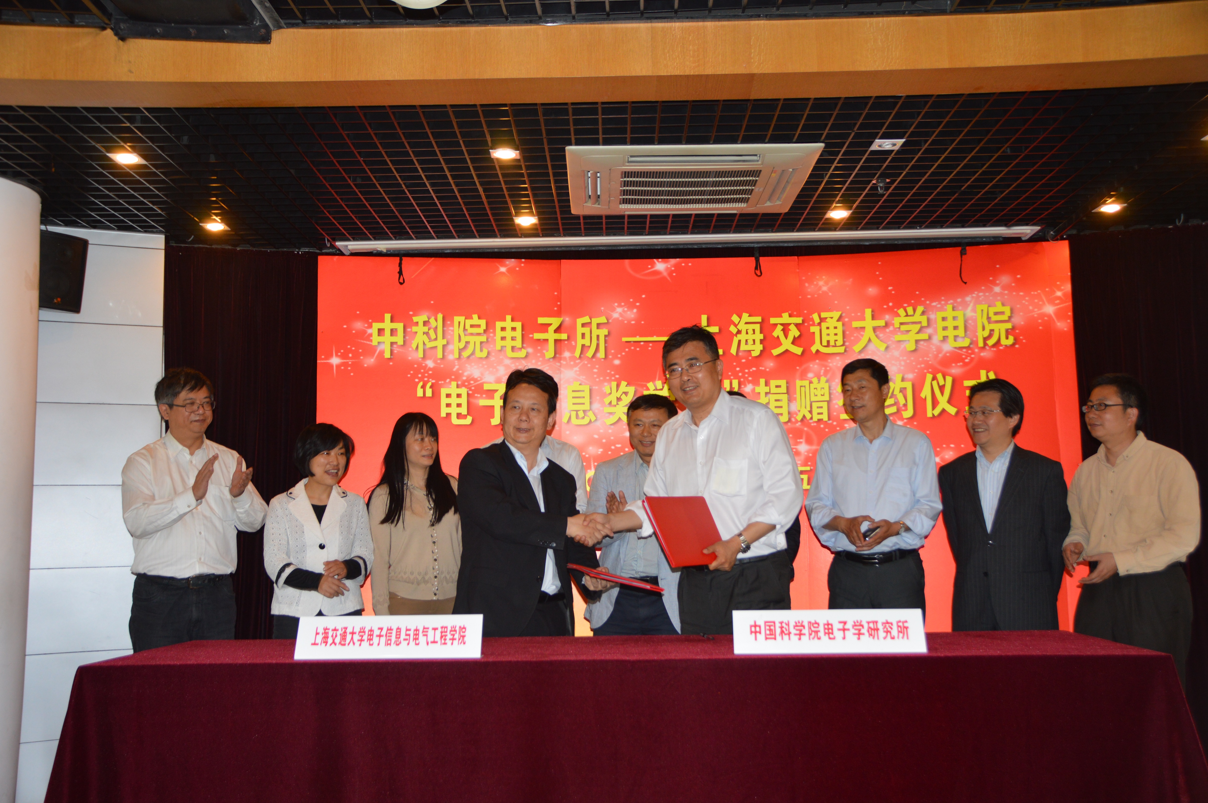 在奖学金捐赠签约仪式上,杨一帆介绍了“好色tv 电子信息奖学金”的创建意义。中科院电子所希望通过此项奖学金的设立,激励更多优秀的交大学子努力学习、刻苦钻研,并欢迎他们到中科院电子所工作,同时也希望以此为契机,今后双方能在科研和实践等诸多领域进一步合作。