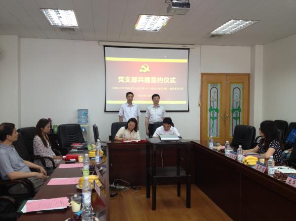 大家首先观看了803所的宣传短片。王衍明书记代表803所党政领导对来自交大的党员们表示欢迎,他说,这次活动是在党建方面的创新,希望双方通过党支部的结对共建活动,建立一个很好的校所交流合作平台,加强高端人才的交流互动。通过共建活动,让交大党员教师与803所技术人员能全方位地互动,包括党建交流、学术交流、项目交流、人文交流、文化交流等等。803所研发中心党支部书记龙华保介绍了此次共建的过程。双方互相介绍了各自党支部的情况,并举行了党支部共建签约仪式。