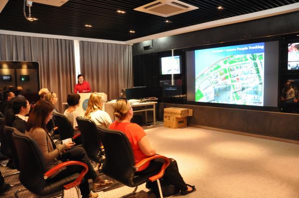 作为参观的第二站,“数字媒体处理与传输”实验室选派闫青博士对张文军教授领衔团队的源起、人员构成、参与社会项目及取得的突破性技术成果做了介绍,国际化与校友联络办公室主任史瑞老师陪同接待。通过讲解,澳方学生知晓了该实验室针对高速、高振等极端环境下进行DTV信号传递所获得的成绩,并通过观看神舟飞船传回图像、北京奥运开幕式及上海世博会开幕式等实况视频切身体会到由该实验室原创性开发的HDTV图像编码与传输协议的高清图像效果。最后,访问生代表们亲自体验了一把该试验自主开发的人脸识别及性别、年纪辨识系统。