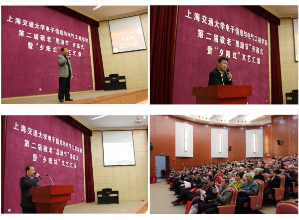 校副校长(原电院党委书记)张安胜、校老龄委常务副主任蒋秀明、电院院长毛军发、电院党委书记苏跃增、电院党委副书记莫光成等出席并参加了此次思源节开幕式及“夕阳红”文艺汇演。蒋秀明主任的致辞表达了他对电院这一品牌活动的大力支持和赞扬;张安胜副校长则表达了他对电院的深厚感情和对未来的美好祝愿;毛军发院长向电院退休老教师汇报了电院在过去的一年里的发展和对未来的规划。