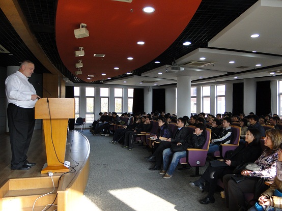 West 从当今时代科技创新,日新月异的发展趋势向学生描绘了一幅未来职业发展的理想蓝图。接着以思科公司为主题,给同学们进行了全面介绍。最后就是思科全球海外实习项目的宣讲和现场问答环节。整个讲座栩栩如生,幽默风趣,博得了同学们阵阵掌声。