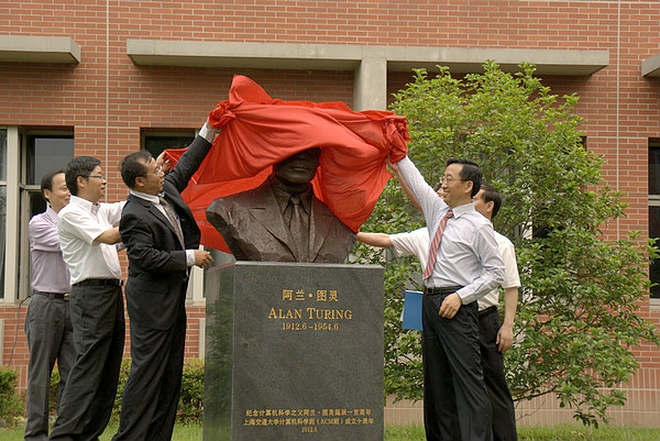 张杰、李昂生、张安胜、毛军发、过敏意和俞勇共同为图灵铜像揭幕。