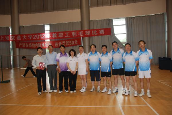 教职工羽毛球团体赛中,电院代表队在经过小组赛和淘汰赛八轮激烈比赛后,最终在决赛中力克财务处与媒设联队荣获本次比赛冠军。