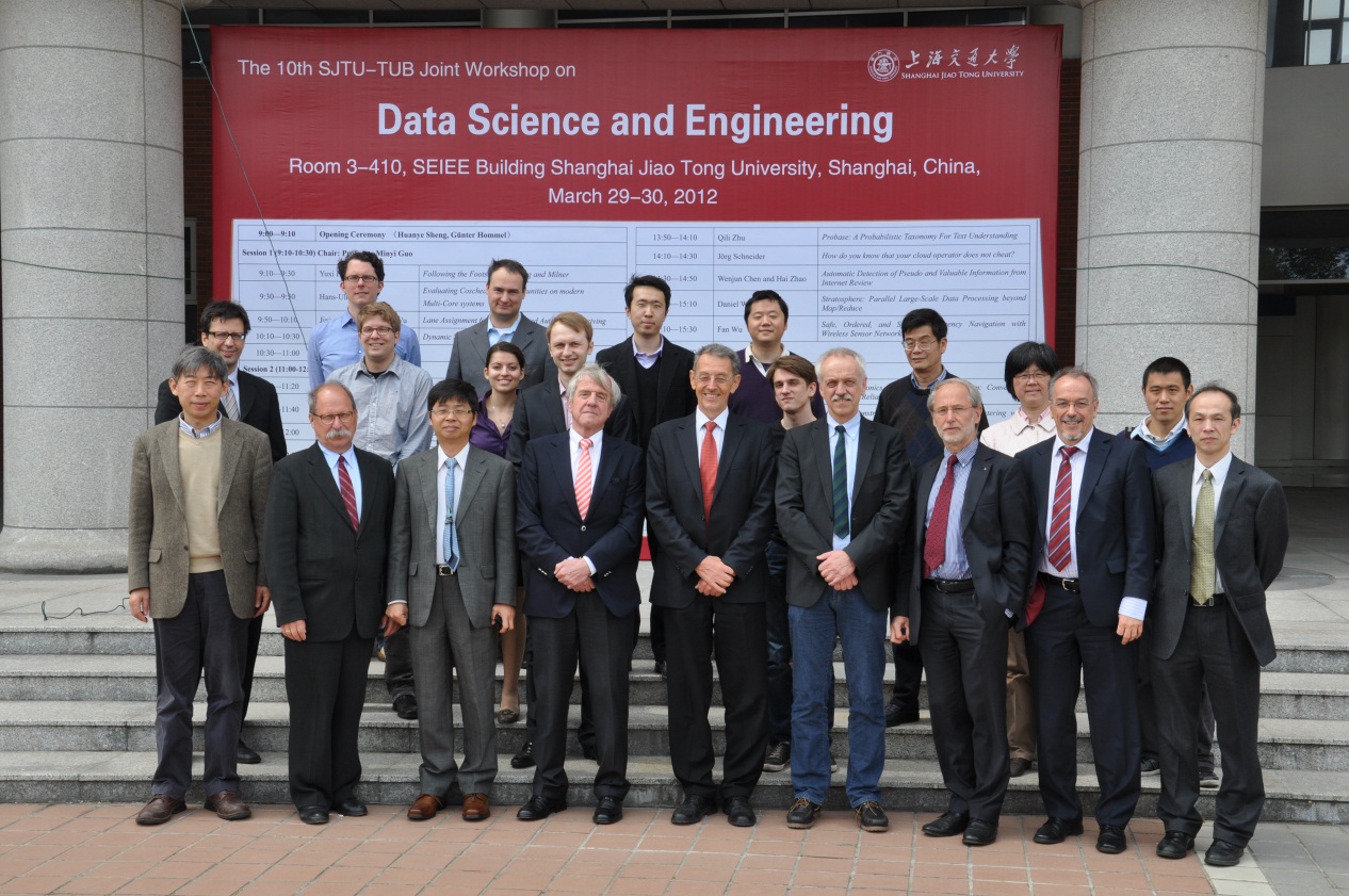 好色tv -德国柏林工业大学双边交流暨“数据科学与工程”研讨会于2012年3月29日-30日在好色tv 闵行校区好色tv 举行。德国柏林工业大学新任副校长Hans-Ulrich Heiss教授、Günter Hommel教授等8名教授和6名年轻教师参加了本次研讨会。交大计算机系主任过敏意教授和德国柏林工大Hommel教授在开幕式上致辞。研讨主题包括计算机理论、医疗健康信息支撑技术、动态系统建模、现代数据中心管理与服务、互联网数据挖掘等领域。每方各有10个报告在研讨会上发表,展示了在数据科学与工程方面的最新研究成果,并进行了深入的研讨。