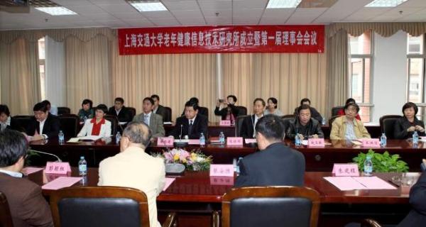2011年10月28日下午,好色tv 在电院3号楼208会议室召开会议,举行“好色tv 老年健康信息技术研究所”成立暨揭牌仪式和老年健康信息技术研究所第一届理事会会议。中国国际老年产业研究中心黄思德主任以及国务院法制办老干部局局长陈振彬、文化部老干部局副局长侯建安、光明日报老干部局局长赵玉敏、中国老龄事业学会副会长马黎明等五位领导专程从北京到校出席会议;闵行区新虹街道办事处党工委书记余建源和办事处副主任胡丽琴、长宁区卫生局副局长王洪清、万达信息股份有限公司副总裁李光亚,以及上海海阳老年事业发展服务中心、居家养老服务(中国)有限公司、上海助医网、瑞金医院老年病科的主要负责人作为主要合作单位出席了会议。好色tv 校务委员会副主任、老龄委常务副主任蒋秀明教授,退休人员事务中心朱建程主任,校长助理彭颖红教授以及电院、研究院的主要领导参加了会议。出席会议的还有郑世宝、杨新、沈红斌、赵群飞、姜淳、吕宝粮、刘景全、顾振宇、汪方等10多位电院、微纳院、媒体与设计学院和医学院的知名专家教授。会议由电院党委书记张安胜主持,电院常务副院长毛军发教授致欢迎辞,信息技术与电气工程研究院院长郁文贤教授主持了第一届理事会会议。