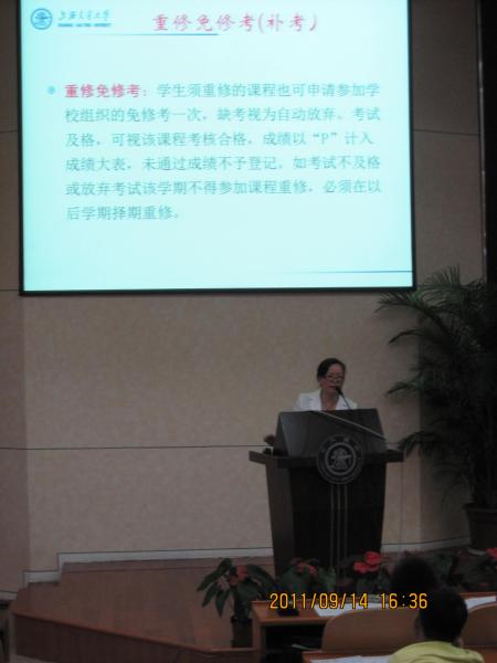 本次活动为本科教务办系列讲座活动的一部分。在此之前,吴运兰老师已经为2011级新生家长做过学籍管理方面的相关讲座;为2008级毕业班的学生们重申了毕业资格审核等相关内容,使他们提前明了目前必须完成的工作,有效地避免某些同学因为修课不当等问题导致不能按时毕业。