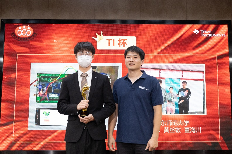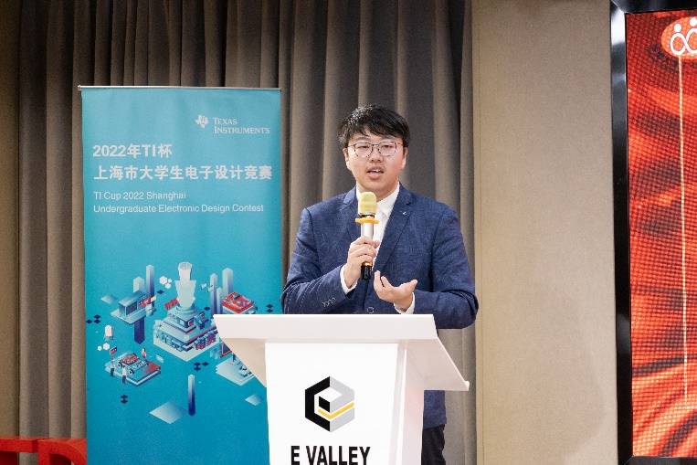 颁奖环节结束后,TI杯/商络电子最佳作品设计奖获奖学生代表华东师范大学董海川同学做了分享发言。他表示,赛队在本届电赛中创造的佳绩离不开学校学院的支持、指导老师的帮助和团队同学的共同努力。结合自身学习和参赛经历,他认为参加本届TI杯电子设计竞赛极大地提升自身的综合能力。