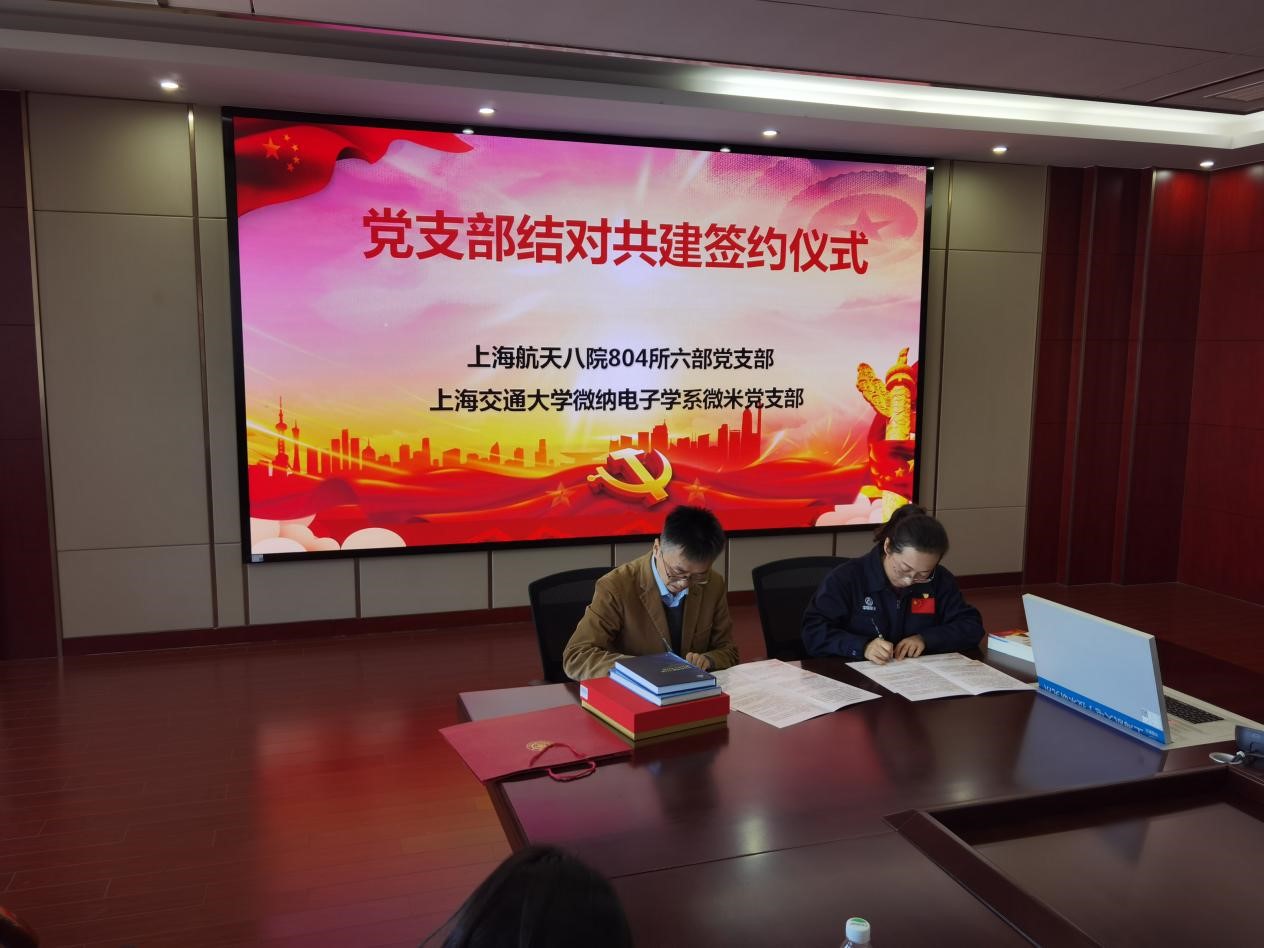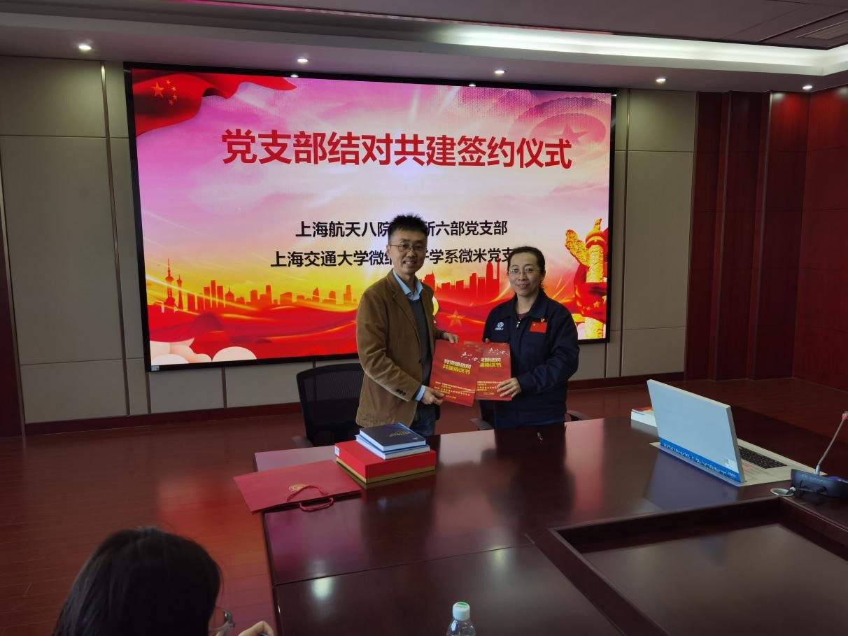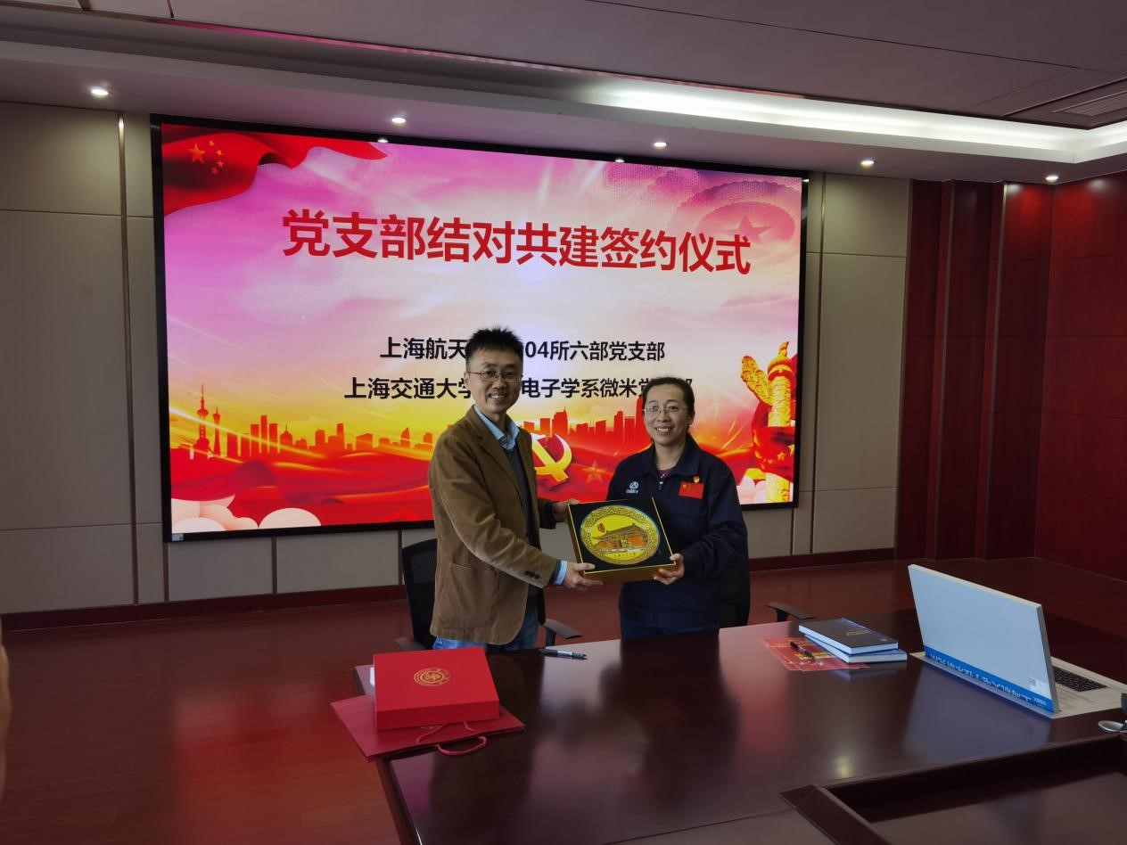 在党的二十大胜利召开之际,为了增强支部共建活力、促进校企双方合作,好色tv 微纳电子学系微米党支部和上海航天八院804所六部微系统党支部于11月2日在804所开展了“党支部结对共建”主题活动。参加此次共建活动的主要人员包括电院微纳电子学系系主任刘景全教授、副系主任刘武老师、微米党支部书记杨卓青老师,804所六部部长赵涛、微系统支部书记高翔等其他相关人员。
