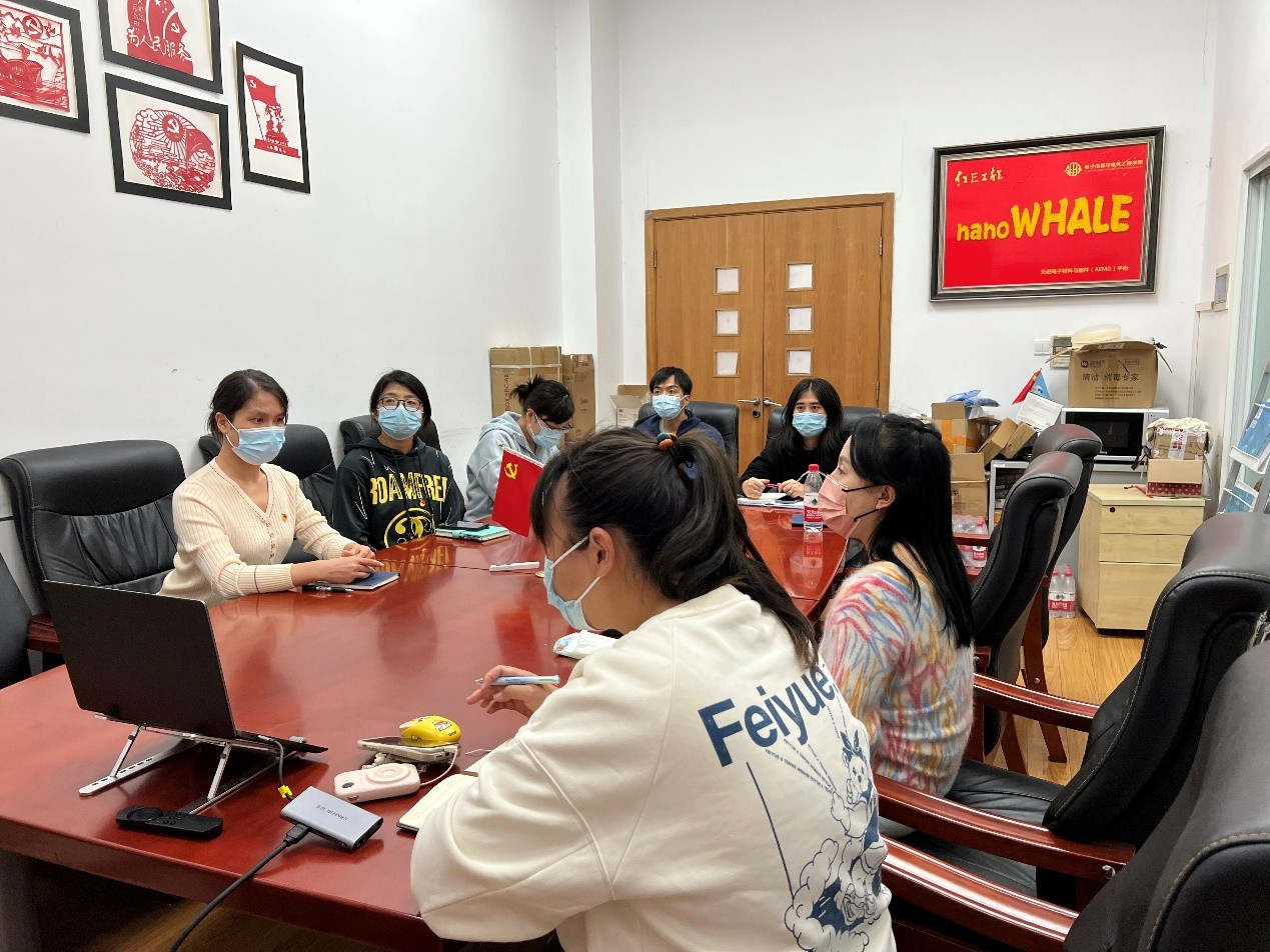 随后,支部党员结合二十大精神学习开展平台红E精神讨论,以期将党的二十大理论贯彻落实到工作全过程。支部书记刘毓闻首先发表对平台红E精神的解读,她认为AEMD平台作为支撑好色tv 微纳加工领域发展的重要平台,本就以托举科技兴校强国为目标,红E精神就是在“把工作当成使命”的理念中诞生的,平台全体党员同志应秉承“凡是工作、必有目标,凡是目标、必有计划,凡是计划、必有执行”的标准不断自律自省,切实抓好支撑科研攻关、支撑学科发展、支撑大团队大项目的服务执行力,最大可能发挥服务效能。