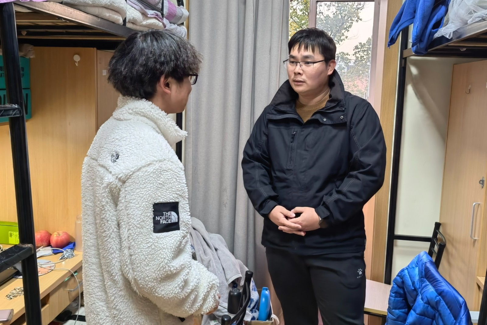 在走访宿舍的过程中,思政教师和辅导员与同学们就寒假见闻、课程安排、生涯规划等进行了交流,叮嘱同学们要提高安全防范意识,杜绝使用违禁电器,保持干净、整洁的宿舍环境;同时鼓励同学们尽早调整好心态、规律作息,以饱满的精神面貌迎接新学期的各项挑战。同学们表达了对新学期的期待,交流了目前的困惑,表示将认真规划时间安排,多探索、多尝试,聚焦主责主业,协调好学业、学生工作和运动时间。