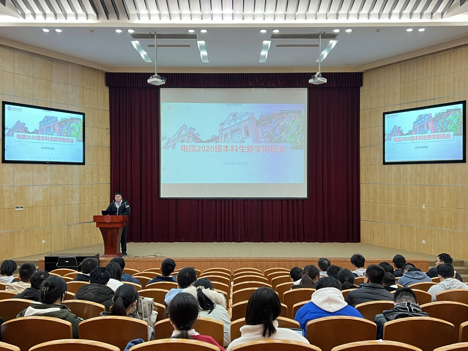 2020级计算机专业本科生班会在微电子报告厅举行,保卫处校卫队队长杨立志、保卫处交通科副科长雷锐应邀作校园安全讲座。电院党委副书记巢睿祺、学生办思政教师及60余名同学参加了讲座。活动由巢睿祺主持。