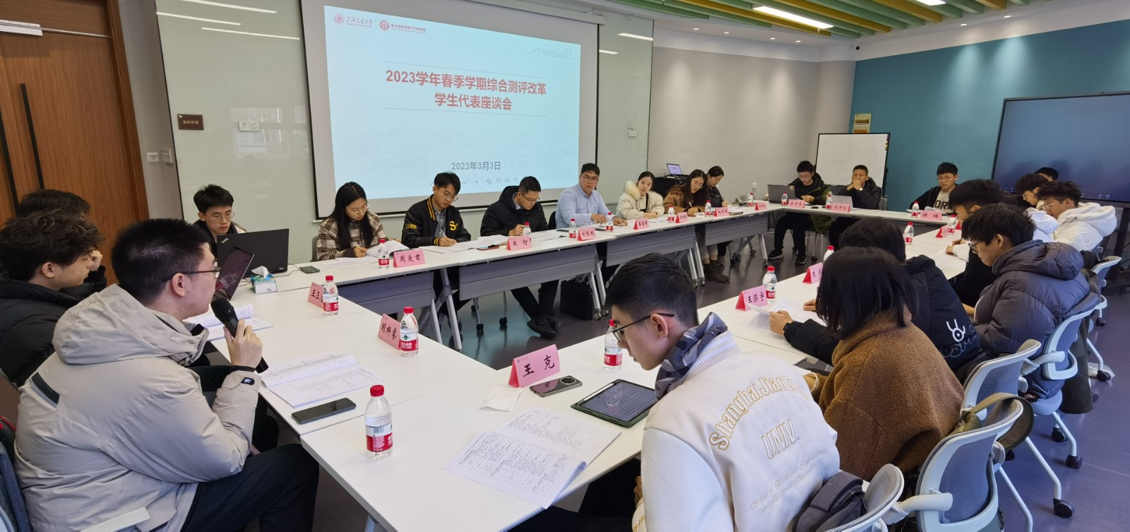 召开2022-2023学年春季学期本科生综合测评改革座谈交流会。电院党委副书记巢睿祺、学生办思政教师代表以及14名本科生参加了座谈交流会。座谈交流会由思政教师郁琦琛主持。