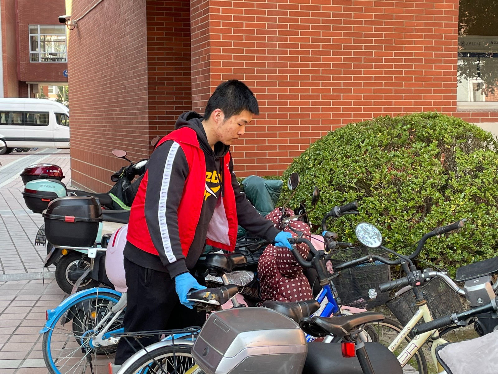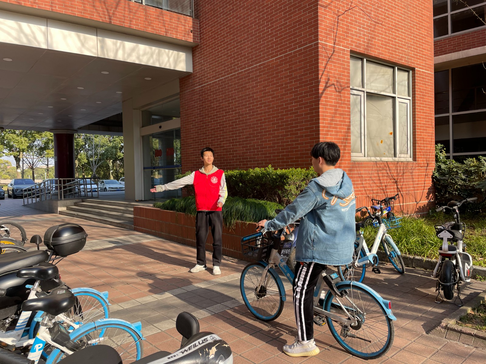 志愿者们统一身穿志愿者马甲,来到了电院群楼周围的非机动车停放点,在物业人员的指导下,将无序停放的车辆转移到规定的停车点,做到车头朝向一致,停放整齐。志愿者们还在停车点附近,引导同学们有序停放车辆。在志愿者的帮助下,实现了电院群楼非机动车的停放整齐划一。