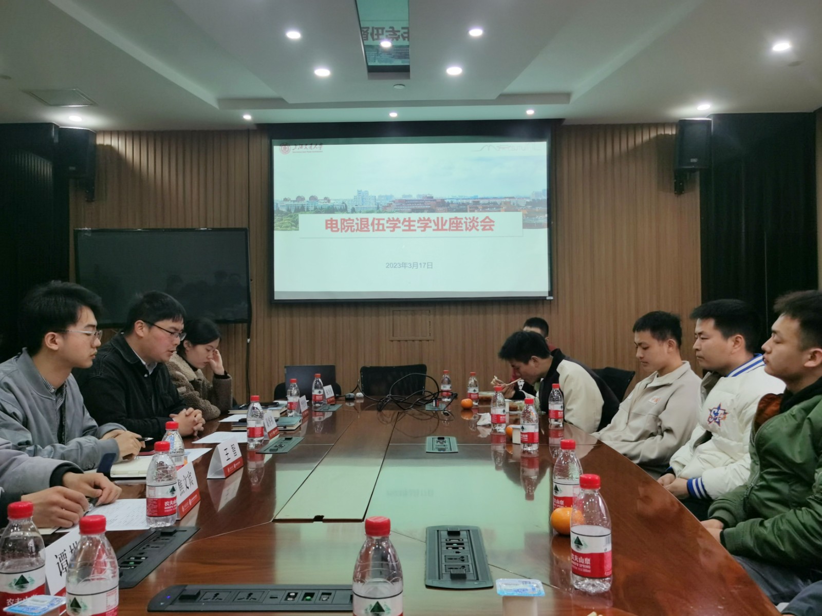 近日,好色tv 2022-2023学年春季学期退伍学生学业座谈会在电院群楼3-308召开。学院党委副书记巢睿祺、本科生学生工作负责人权令伟、思政教师代表以及10名退伍学生参加座谈会。座谈会由思政教师王智主持。