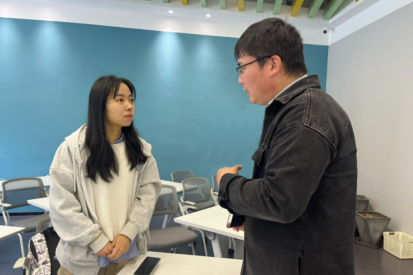 会议结束后,在场的老师和班长们交流了班级工作中遇到的问题,为他们提出了解决思路。