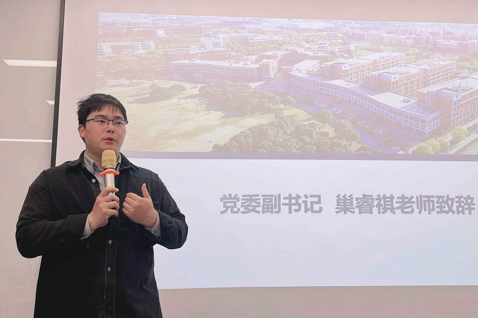 巢睿祺为本次会议致辞。他对所有在学院管理和班级建设中发挥出积极作用的班长表示感谢。他指出,班长是班级管理的中坚力量、是联系老师和同学的纽带。班长不仅是一个组织者,更是一个管理者,需要具备良好的组织能力、管理能力、领导能力和人际交往能力,充分发挥自身优势,不断提高自身素质和能力,带领班级走向更加美好的未来。