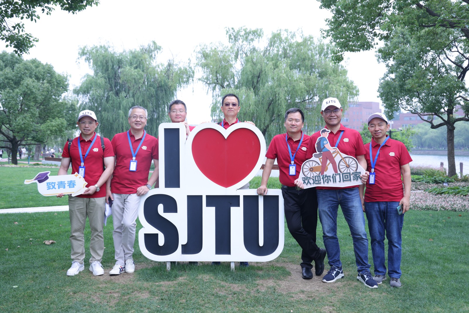 9时整,闵行校区“怀旧与寻梦之旅”启航。在电院程睿杰老师、电子工程系杨宇红老师和学生志愿者的带领下,校友们重游当年学习生活所在的区域——西区宿舍楼、教学楼和思源湖等校园地标。