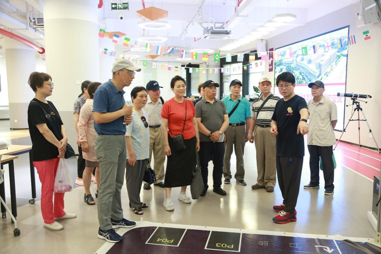 活动伊始,支部党员来到电院教学发展与学生创新中心进行参观交流,教发中心时良仁老师为同志们介绍E谷的场地建设、科创培育、转化成果等方面的工作情况。支部党员就学生科创实践资源与环境的今昔对比进行热烈讨论。