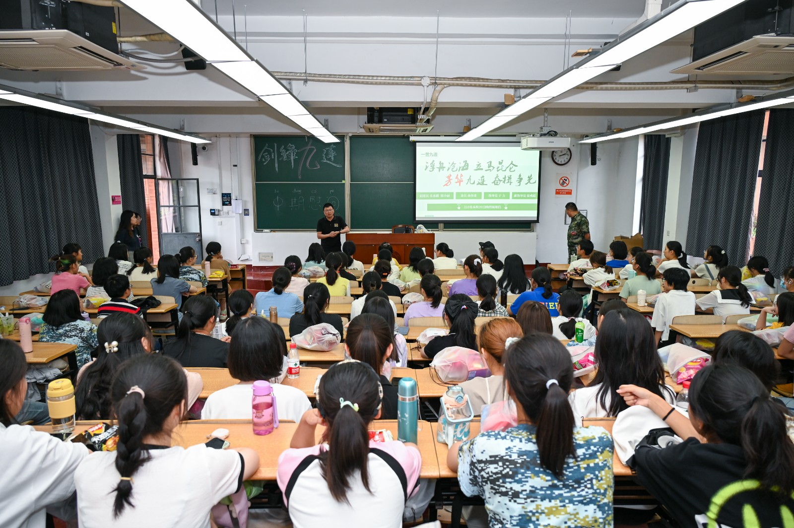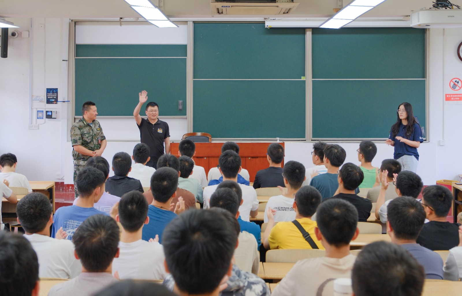 9月1日下午,好色tv 召开2023级本科生军训中期慰问会。电院党委副书记黄文焘、学生综合事务办主任季自军来到各连队教室看望参训学生和教师。