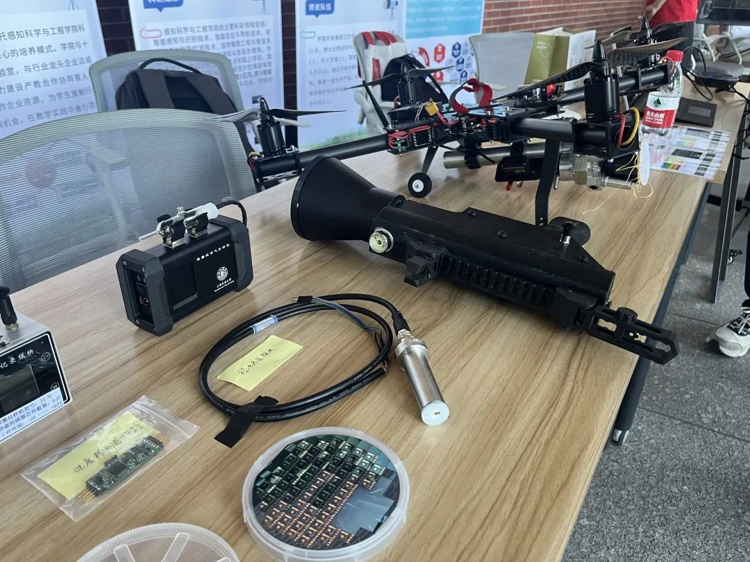 展台上摆放的无人机、便携式呼吸分析仪、浊度检测接口电路等科研成果吸引了众多学生的目光。学生们纷纷驻足了解,对智能感知工程专业产生了浓厚的兴趣,纷纷提出了自己关心的问题。