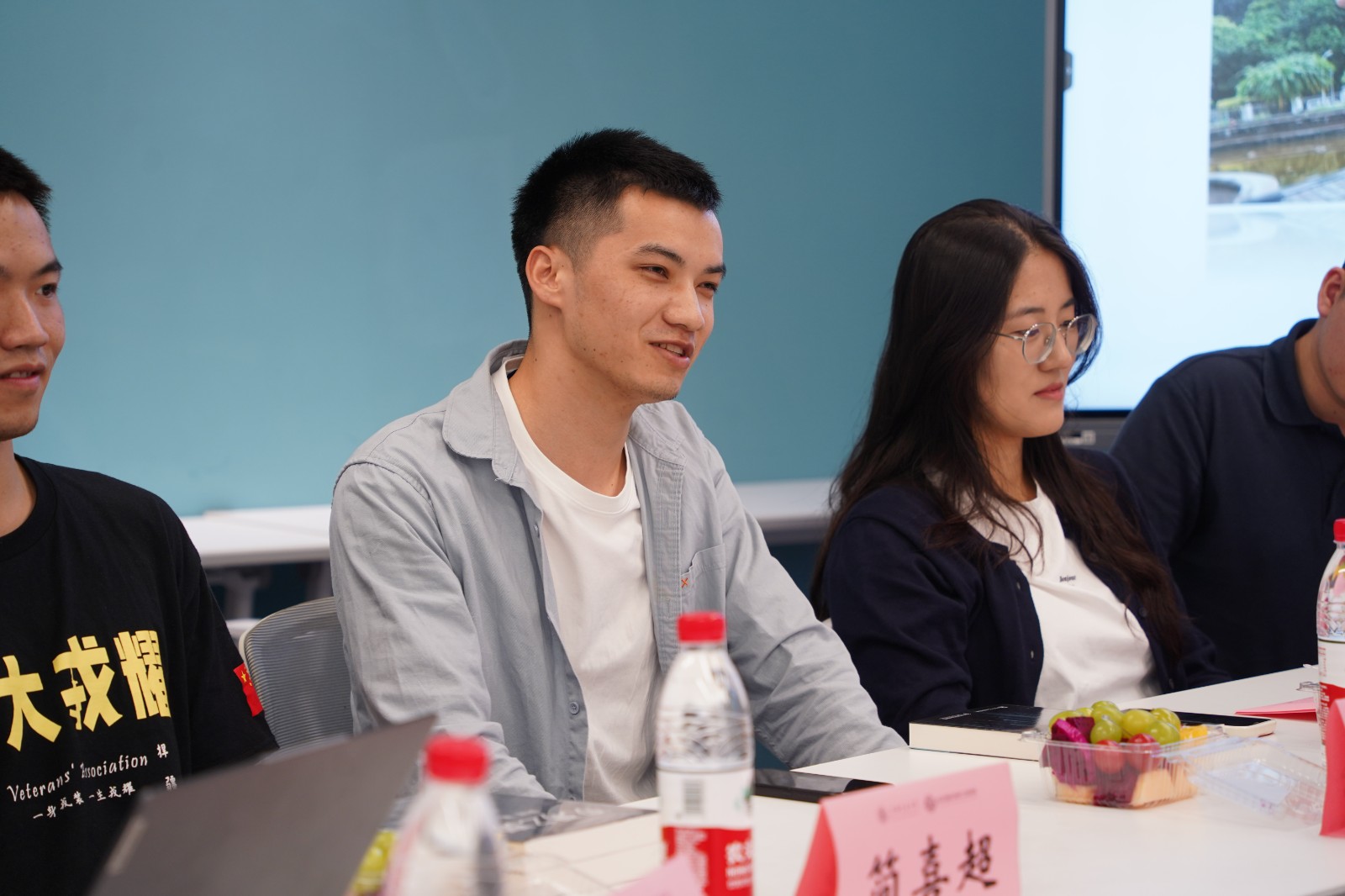 王智进行退伍返校事务解读,介绍了学院入党流程及注意事项,鼓励同学们努力成为一名光荣的共产党员,为实现伟大的中国梦贡献自己的力量。针对校园适应及学业安排方面,王智指出希望同学们尽快适应新环境,合理分配时间、积极反馈疑惑以及探索多方面发展,并在学有余力的前提下,积极参与学生工作,加入学工队伍及学院助管队伍,积极发挥退伍学生模范作用。最后,王智简要介绍了重点就业机会和方向,为志在投身基层单位、重点行业的同学们提供就业思路。