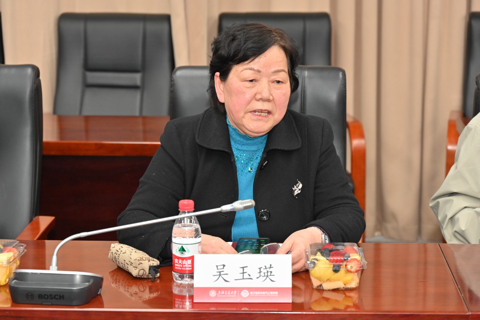 在与会人员交流环节,校关工委对电院关工委顺利换届表示祝贺,对老一届电院关工委的辛勤付出表示感谢,对新一届电院关工委的未来工作提出期望。纪凯风表示,今年两会热词“新质生产力”也为大家今后工作提供了总方向,要努力关心学生成长成才;陶燕敏表示,新一届电院关工委要发挥老同志的作用,统一思想,发挥互联网时代的特定优势,多开展一些创新性的工作,助力学生党建工作;罗九甫感谢王绍平等老一届关工委成员多年如一日的付出,他希望新一届电院关工委继续努力创造辉煌成绩;吴玉瑛回顾了电院关工委成立以来的历史,她表示电院关工委各项工作始终走在最前头,她肯定了电院关工委一路以来的成绩,希望新一届电院关工委能够有新的品牌、新的思路,进一步提高在学生工作中的影响力,完善学生的思想政治教育、党建教育和三观教育。