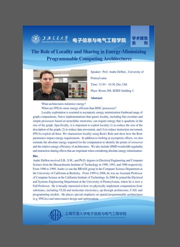 报告题目:The Role of Locality and Sharing in Energy-Minimizing Programmable Computing Architectures