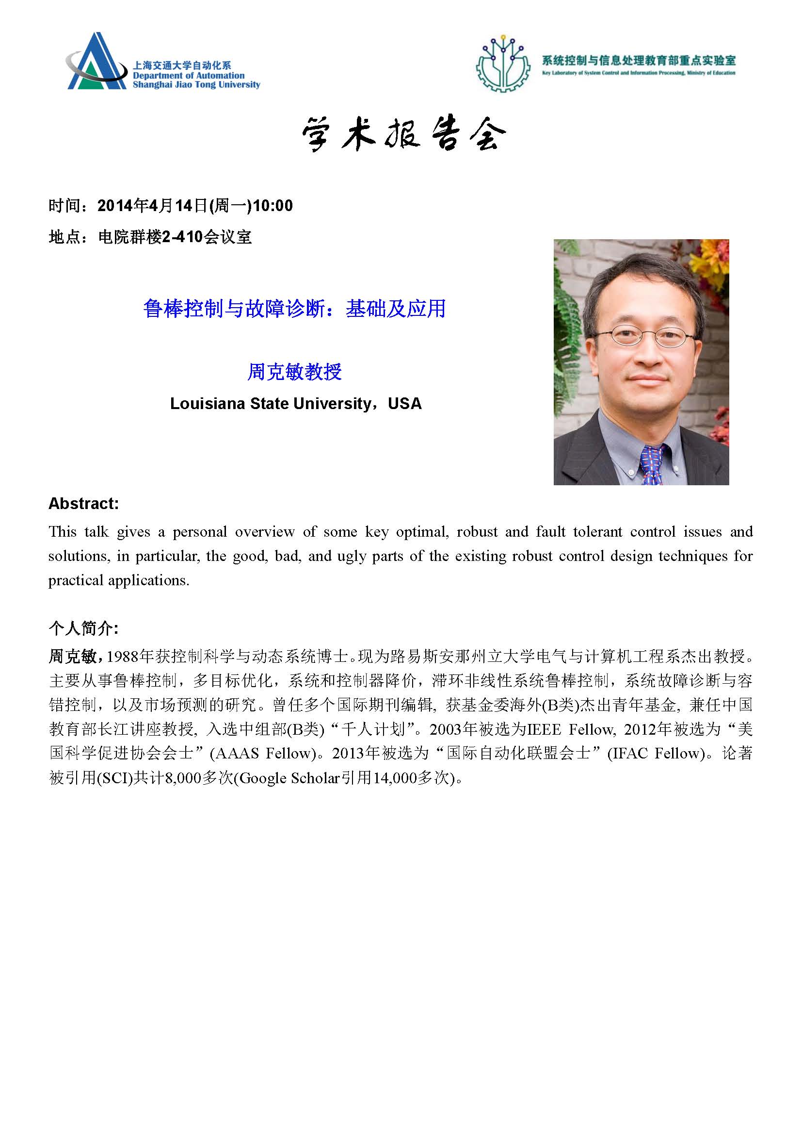 学术报告会——鲁棒控制与故障诊断:基础及应用