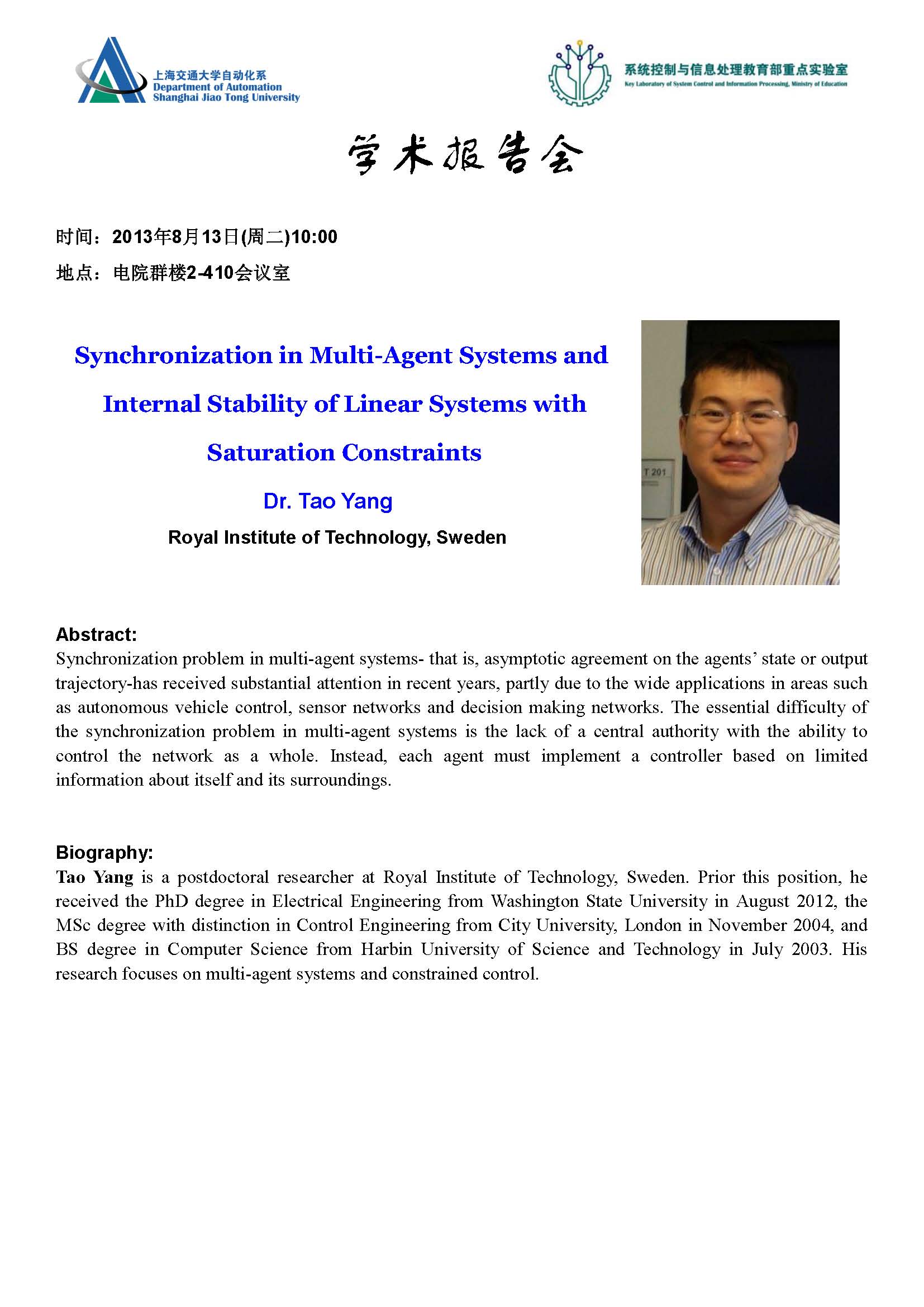 Synchronization in Multi-Agent Systems and Internal Stability of Linear Systems with Saturation Constraints